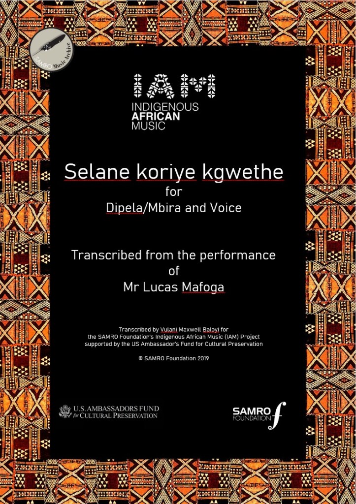 | for Dipela/Mbira and Voice Transcribed from the performance of Mr Lucas Mafoga by Vulani Maxwell Baloyi |