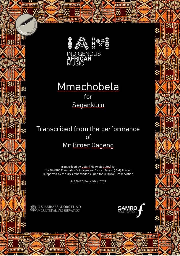 | for Segankuru, transcribed from the performance of Mr Broer Oageng by Vuyani Maxwell Baloyi. The work was provided by ILAM. |