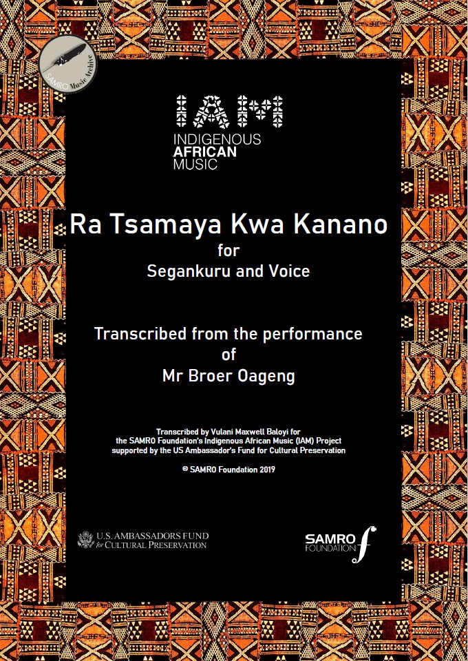 for Segankuru, transcribed from the performance of Mr Broer Oakeng by Maxwell Baloyi