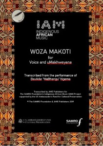 Transcribed by Jiwe Publishers from a performance of Mrs Bavikile ‘Mabhengu’ Ngema, Woza Makoti is a traditional isiZulu and isiXhosa wedding song for the groom’s entourage. When the groom’s family fetch the bride for the wedding they call to the bride to join them as she is needed in her new home.