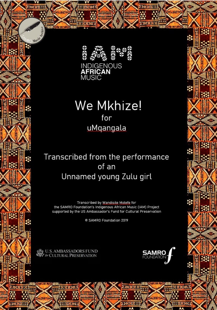 | Zulu: We Mkhize! Mkhize! Ntombana, yigam’lespoko ntombana | English: Hey! Mkhize! Mkhize! Little girl, it is the name of a ghost! Little girl! |