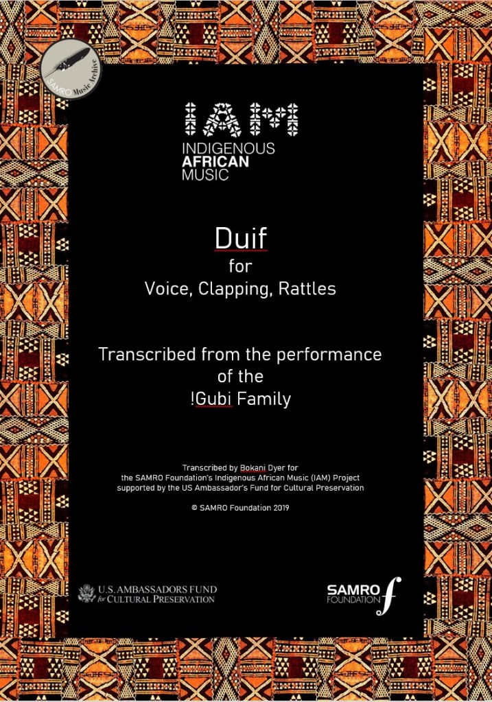 Transcribed from the performance of the !Gubi Family by Bokani Dyer