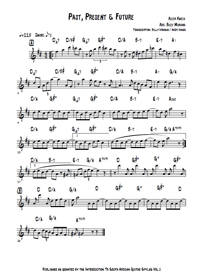 Contemporary South African Jazz tune that advanced the cliché harmony basic Progression | I | IV | I/V V7|: Substitutions: I III | IV bV0|I/V VI| II Vsus|